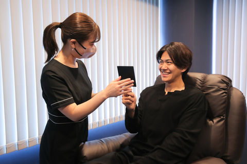 ワックス脱毛の施術をご確認いただきます。間引きをご希望でしたらお申し付けください。